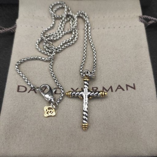 - David Yurman Femei Petite X Colier Pandantiv Cruce din Argint cu 14K Aur Galben 24mm